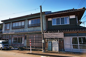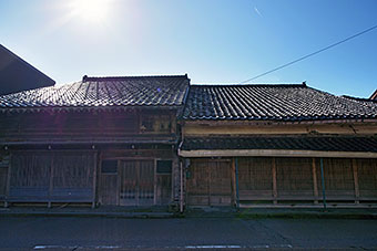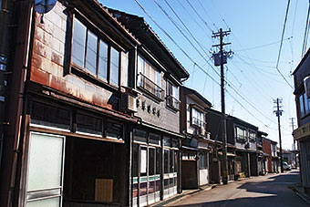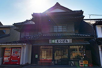 | 続く古い家並。 | 松原酒店は江戸時代から続く老舗。 | 八幡宮前の荒井米穀店。数年前に『鶴瓶の家族に乾杯』に出たそう。 |