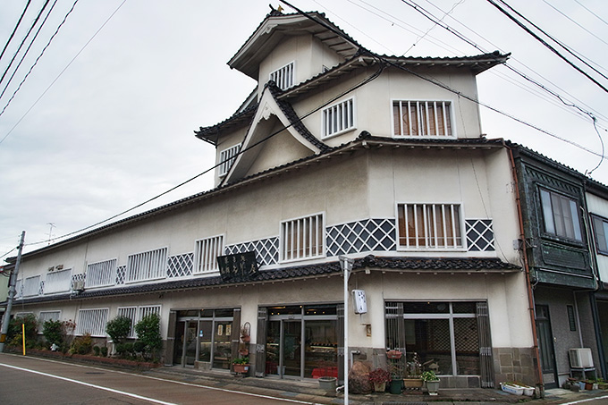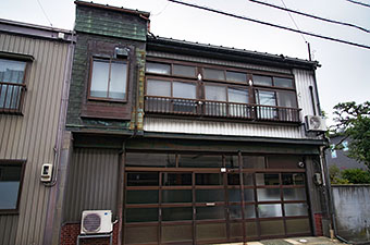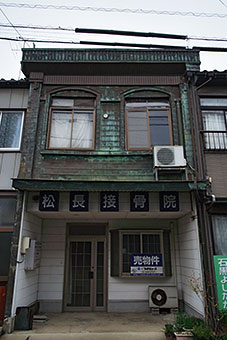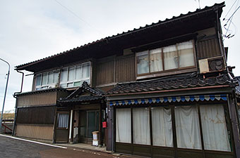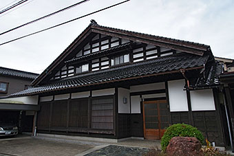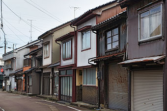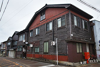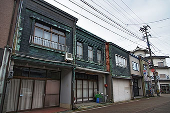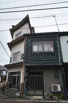 | 塀が立派な誓光寺。 | ずらっと並んだ銅板貼りの家。いわゆる看板建築ですね。 | 石川屋斜向かいにある大きな板張りの家。 |