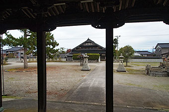 | 本堂から向かいの家を見る。 | これは鼓楼のようです。 | 平入りの家もあります。 |