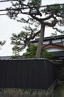 | 黒塀に松。 | 龍の彫り物のあるおんぞはん。昇龍地蔵堂とあるようです。 | ここから小杉。小杉駅にある龍の鏝絵。小杉では古くから小杉左官と言われた職人たちが腕を振るっていたそう。これは現代の職人によるもの。 |