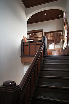 | 『双龍』の元の姿。砺波市宮森新の名越家の土蔵のもの。 | 二階への階段。 | 二階は元は議場です。 |