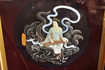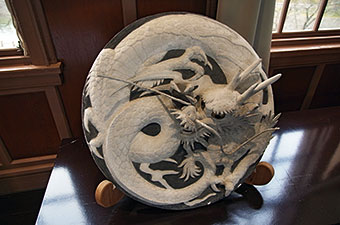 竹内源造作の龍。蔵の妻飾りだったもの。水神の龍は火除けの意味があります。
