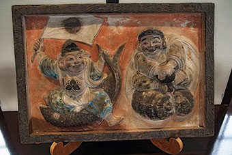 同じく大黒。絵馬として作られた可能性があるとか。 | 同じく恵比須・大黒。昭和十年代のもの。 |