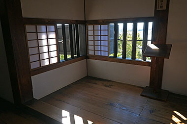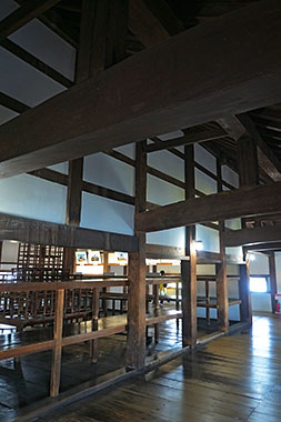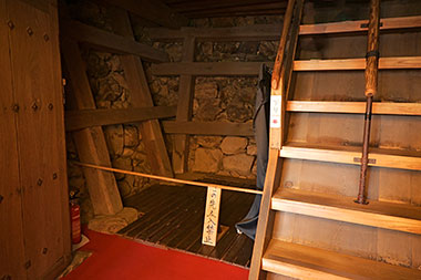 | 正面右側に突き出した付櫓の内部。 | 鎧など展示。右は御典医の鎧とか。 | 石落しの間。攻めてきた敵に石を落とす。 |