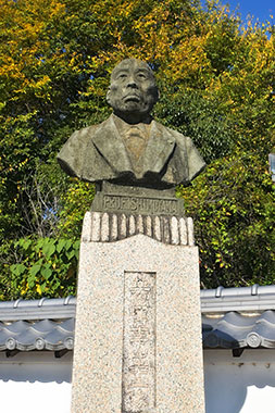 | 犬山神社。歴代の犬山城主を祀るもの。 | 榎塚と中川清蔵主(せいぞうす)の碑。1584年、城主の留守を任されていた龍泉院住職で城主の伯父清蔵主が敵襲に防戦、ここで討死。榎は今はありません。 | 下山順一郎の胸像。犬山の生まれで、明治期の日本初の薬学博士。 |