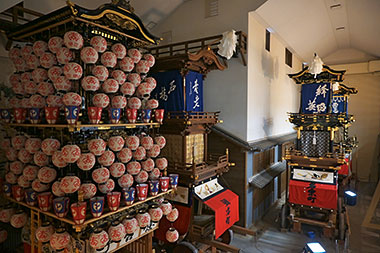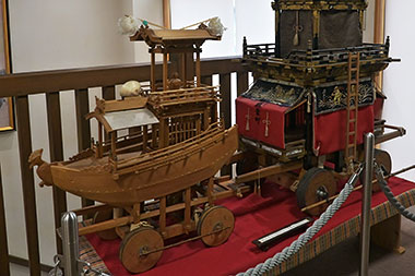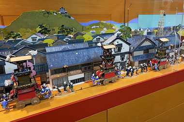 | 二階から見た図。 | 手前のものは新町の浦嶌(うらしま)という犬山祭唯一の船形車山の模型。 | 手作り感ある祭のジオラマ。 |