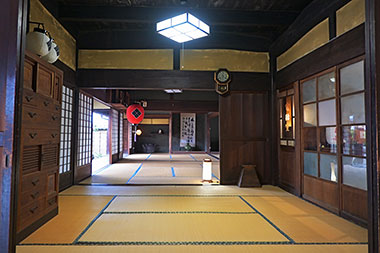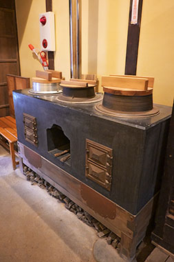 | 磯部家住宅主屋の内部。江戸時代は呉服商。江戸末期の建物で、明治二十四年の濃尾地震で被災、修理されたもの。 | 主屋の座敷です。 | 端正なデザインの竃門がありました。 |