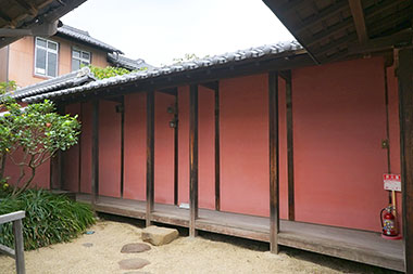 屋内にある井戸。木組みは修復されたもの。犬山は地下水に恵まれていたそうです。 | 裏座敷へと続く廊下はベンガラ塗り。 |