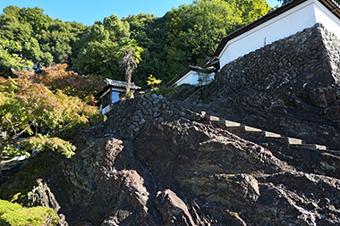 | 瑞泉寺本堂。1415年の創建。信長の犬山城攻略で焼失するも、朱印状を得て再建されたそう。 | 瑞泉寺境内。岩山と石垣で要塞のよう。 | お隣の臥龍寺(がりょうじ)は1466年に創建。 |
