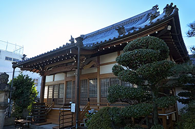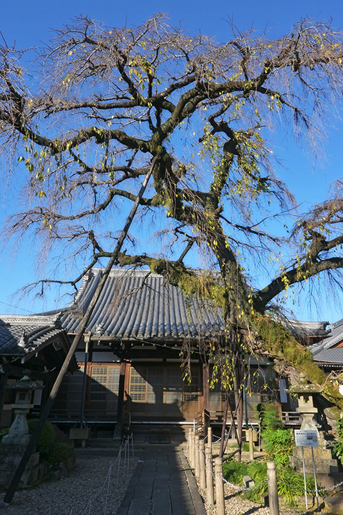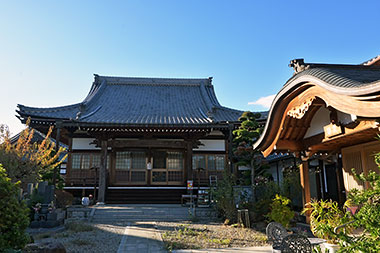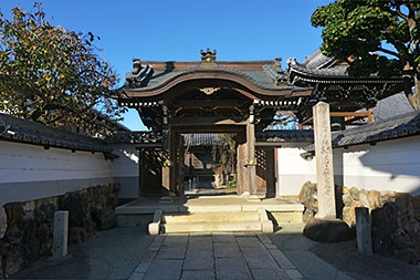 | 麺類みっちゃんの看板がある長屋形式の建物。 | 寺内町の寺めぐり。これは西蓮寺。1493年に現鵜沼で創建、1501年にこの地に。山門は江戸中期のもの。 | 西蓮寺本堂は1760年のもの。 |