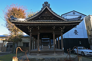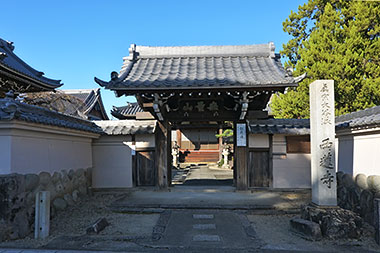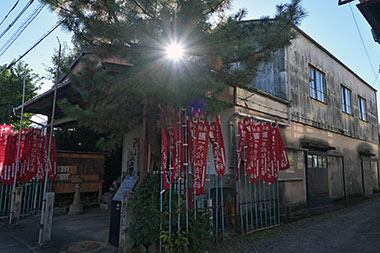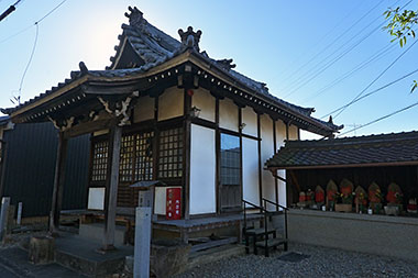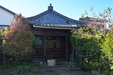 | 城下町の寺内町(じないちょう)にある一本松弘法大師堂。 | 町工場のような建物の前部に作られています。 | 満蔵院というお寺。831年創建という古いお寺らしいです。 |