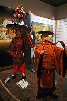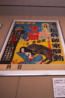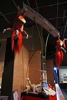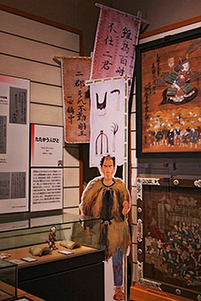 | 百姓一揆の展示。実は色々な準備や決まりのある要求貫徹のための闘争。歴博の展示は、支配者でなく民衆の側に立ったもので、非常に好感が持てました。 | 小豆島で今も続く中山農村歌舞伎のジオラマです。長野の祢津で同様のものを見たなあ。 | 幕末から明治にかけての人形師松本喜三郎の生人形の写真。 |