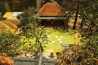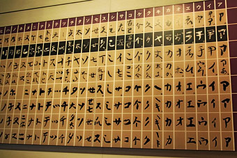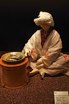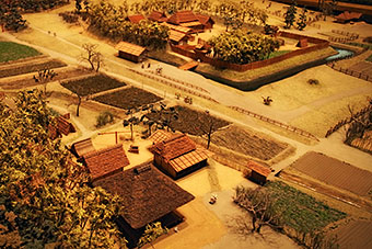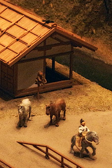 | 九世紀から十三世紀にかけてのカタカナのいろいろ。 | これは東国の武士の館。 | 凝ったジオラマで、猿もいます。見てて楽しい。 |