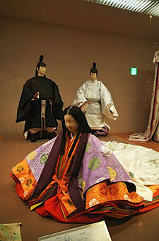 これは平安時代の藤原道長などの邸宅、東三条殿。寝殿造りの典型。極楽浄土が見えるでしょうか。 | いわゆる十二単などの往時の貴族の衣装。 |