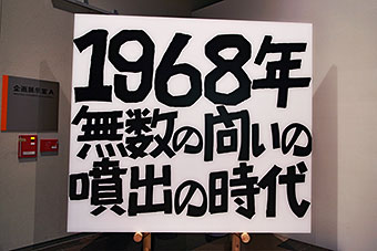 | お人形様。村の入り口に祀り、疫病などを追い払う。これは福島のもの。昔、見た鹿島様は今は展示されていませんでした。 | 魚の行商用のカン(右)とその中のゲス(左)。昭和三十年代のもの。当時は行商人専用の「鮮魚列車」があったそうです。 | 企画展「1968年 無数の問いの噴出の時代」の立て看風看板。こっちは撮影禁止でした。無数のチラシにゲバ棒からピンクのヘルメットも展示。 |
