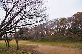 | 空堀です。 | 本丸。右側にはっきり土塁が残っています。 | 佐倉陸軍病院の跡。城跡には陸軍の駐屯地がありました。 |